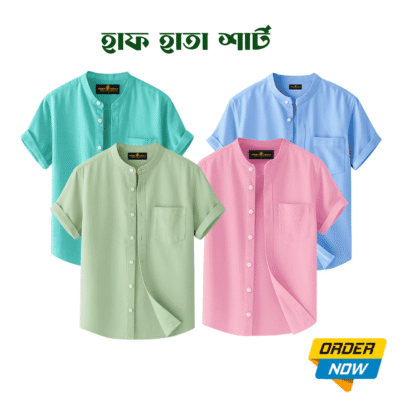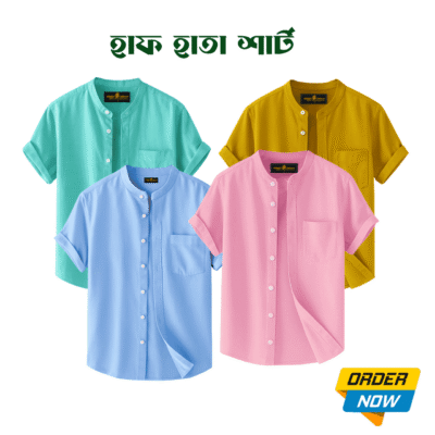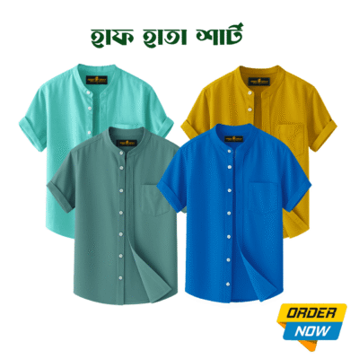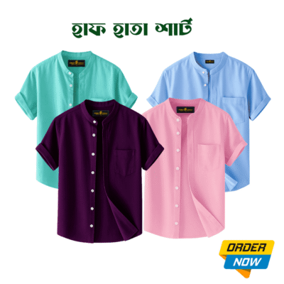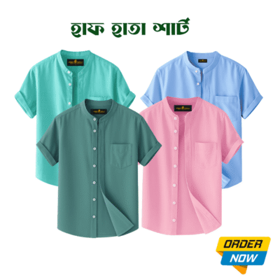 4 Pcs Half Sleeve Ban Coller Shirt- Sky+Pest+misty+Kathal