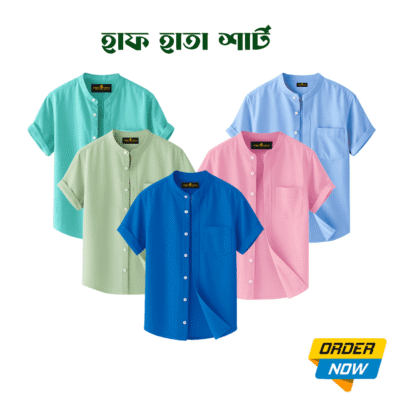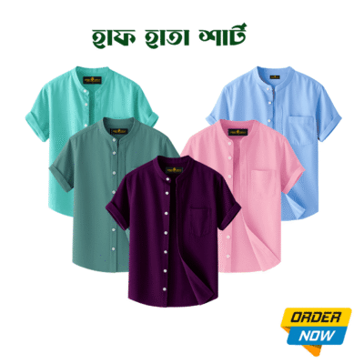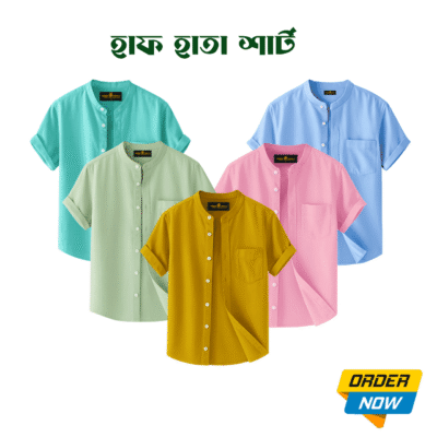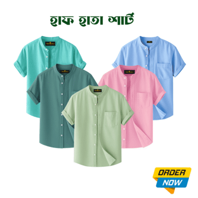 5 Pcs Half Sleeve Ban Coller Shirt- Sky+Pest+Misty+Lemon+kathal