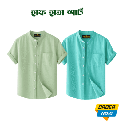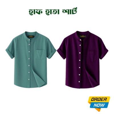 2 Pcs Half Sleeve Ban Coller Shirt- Kathal+Misty