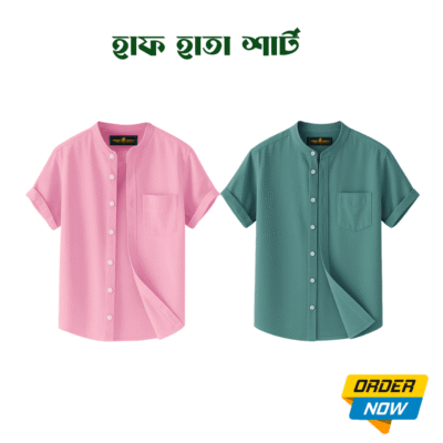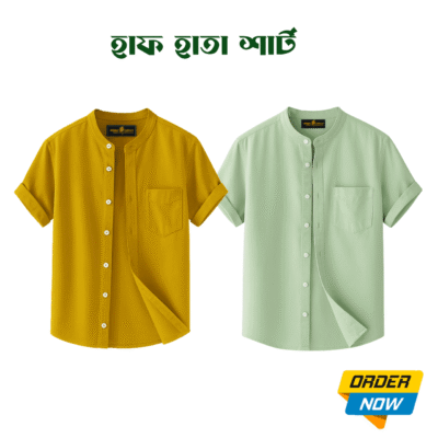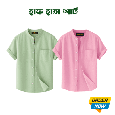 2 Pcs Half Sleeve Ban Coller Shirt- Kathal+Pest