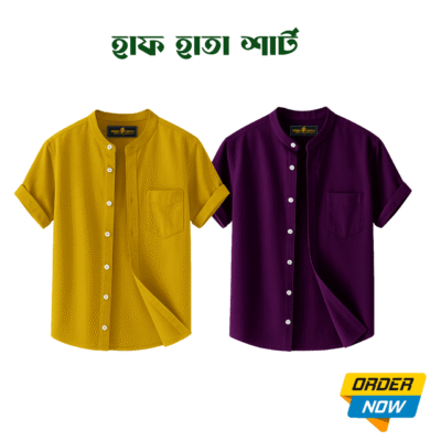 2 Pcs Half Sleeve Ban Coller Shirt- Lemon+Purple