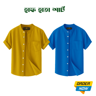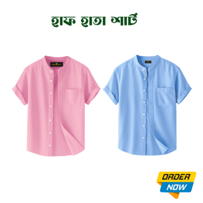 2 Pcs Half Sleeve Ban Coller Shirt- Royel…