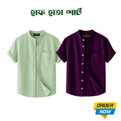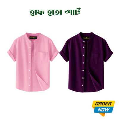2 Pcs Half Sleeve Ban Coller Shirt- Misty+Purple