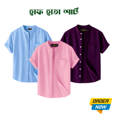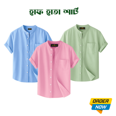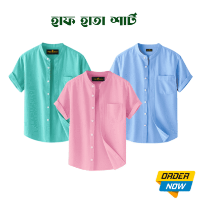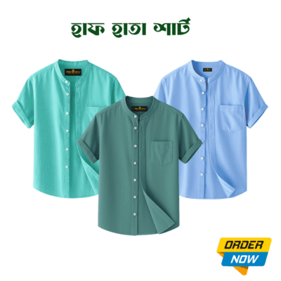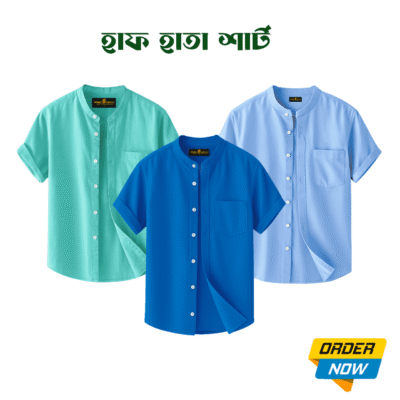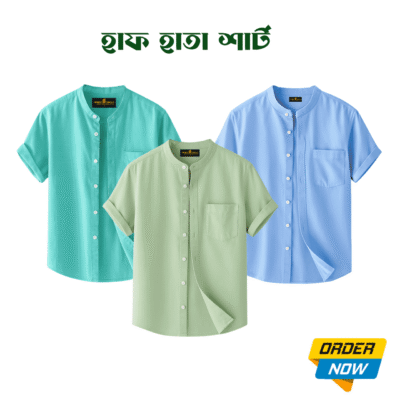 3 Pcs Half Sleeve Ban Coller Shirt- Misty+Kathal+Sky