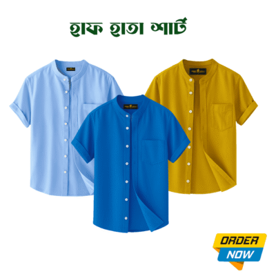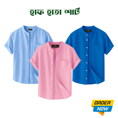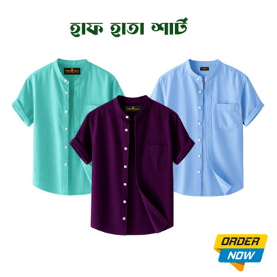 3 Pcs Half Sleeve Ban Coller Shirt- Sky+kathal+Royel…