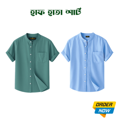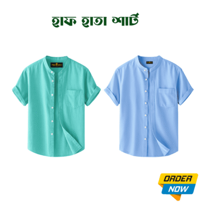 2 Pcs Half Sleeve Ban Coller Shirt- Sky+Kathal