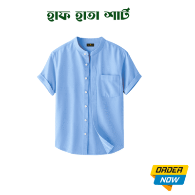 1 Pcs Half Sleeve Ban Coller Shirt- Sky